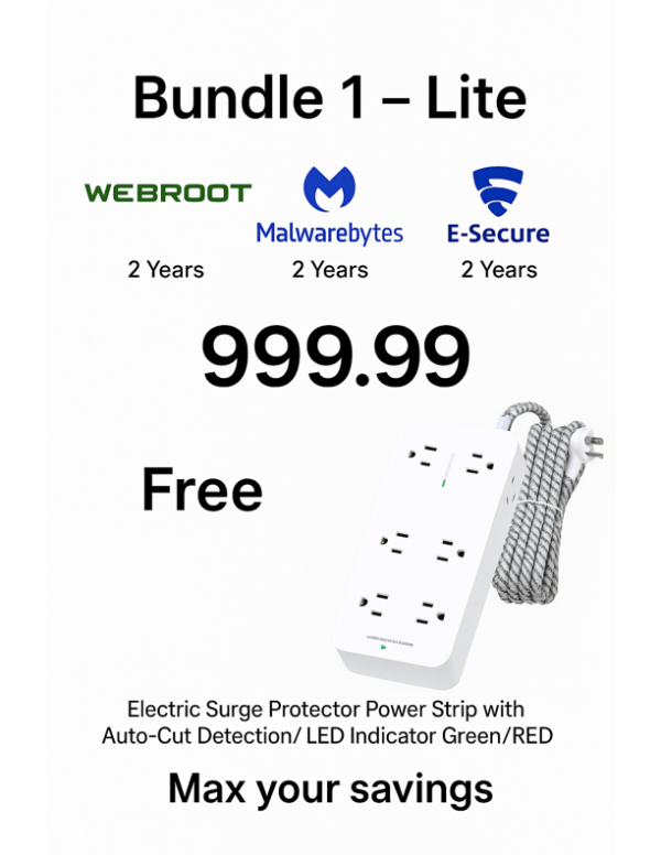 2 Years Webroot + 2 Years Malwarebytes + 2 Years E-Secure = 999.99