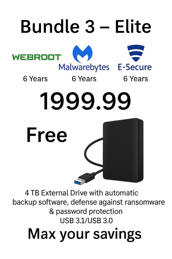 6 Years Webroot + 6 Years Malwarebytes + 6 Years E-Secure = 1999.99